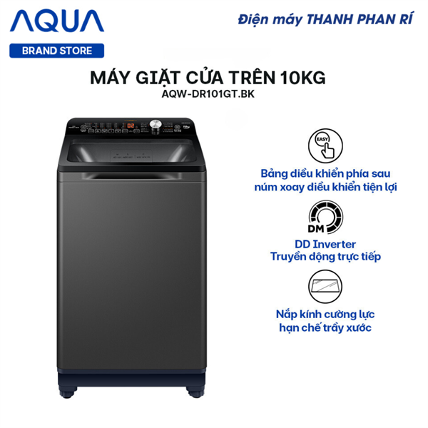 Thuộc dòng sản phẩm mới ra mắt năm 2021, máy giặt Aqua 10 kg AQW-DR101GT BK với thiết kế kiểu cửa trên quen thuộc, tích hợp sẵn 12 chương trình giặt giũ cùng công nghệ kháng khuẩn từ mâm giặt ABT giúp loại bỏ 99.99% vi khuẩn - tác nhân chính gây ra mùi hôi khó chịu bên trong lồng giặt. Đây sẽ là sự lựa chọn đáng cân nhắc cho gia đình bạn.