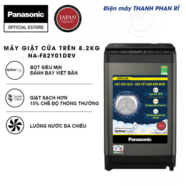 Máy giặt Panasonic 8.2 kg NA-F82Y01DRV thuộc dòng máy giặt cửa trên có thiết kế thanh lịch và hiện đại. Tích hợp đa dạng các công nghệ như hệ thống ActiveFoam đánh bay vết bẩn cứng đầu, giặt siêu sạch tăng khả năng loại bỏ vết bẩn.