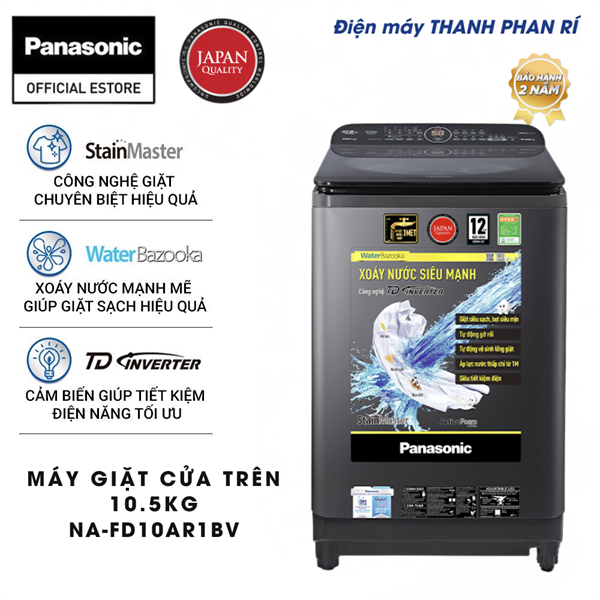 Đánh giá chung, Panasonic Inverter 10.5 Kg NA-FD10AR1BV là một trong những máy giặt lồng đứng phù hợp với những hộ gia đình có trên 7 thành viên. Ngoài việc sở hữu nhiều công nghệ giặt sạch tiên tiến, máy giặt Panasonic này còn mang lại hiệu quả tiết kiệm điện, nước bên cạnh yếu tố vận hành êm ái trong suốt thời gian sử dụng.