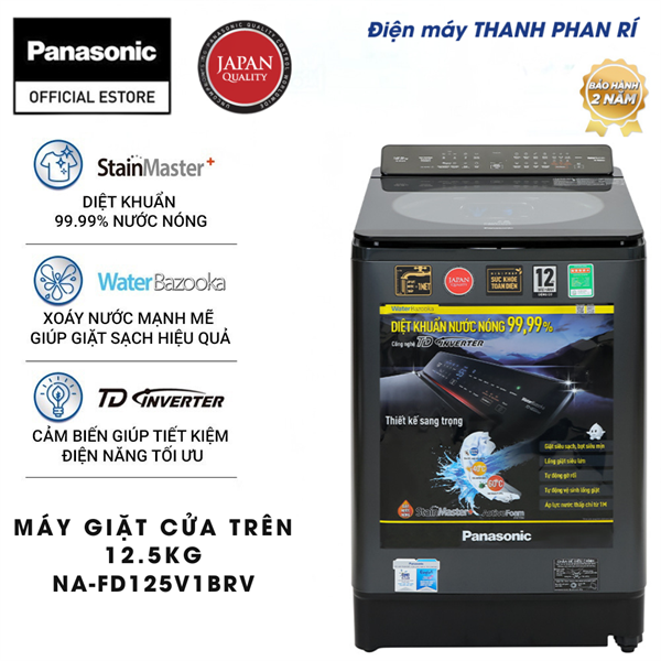 Nhìn chung, máy giặt Panasonic Inverter 12.5 kg NA-FD125V1BV sẽ là sự lựa chọn lý tưởng cho những hộ gia đình trên 7 thành viên với động cơ hoạt động mạnh mẽ, êm ái. Được tích hợp công nghệ giặt nước nóng StainMaster+, hệ thống tạo bọt siêu mịn ActiveFoam, xoáy nước mạnh mẽ Water Bazooka,... sẽ giúp quần áo được làm sạch tối ưu.
